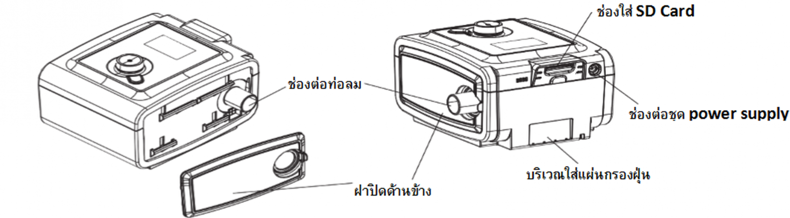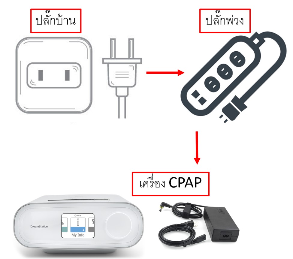 • การเก็บสายไฟของเครื่องช่วยหายใจ CPAP